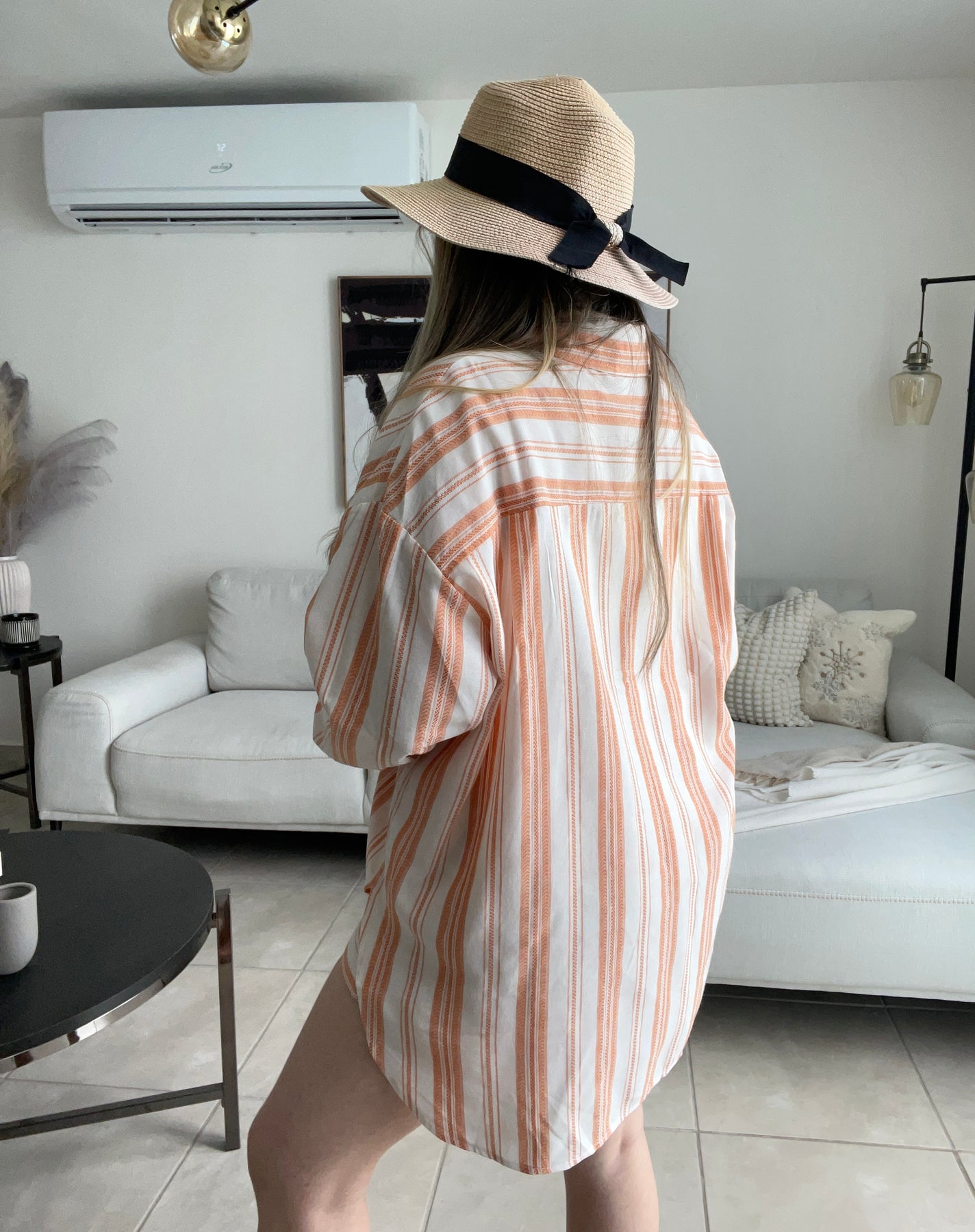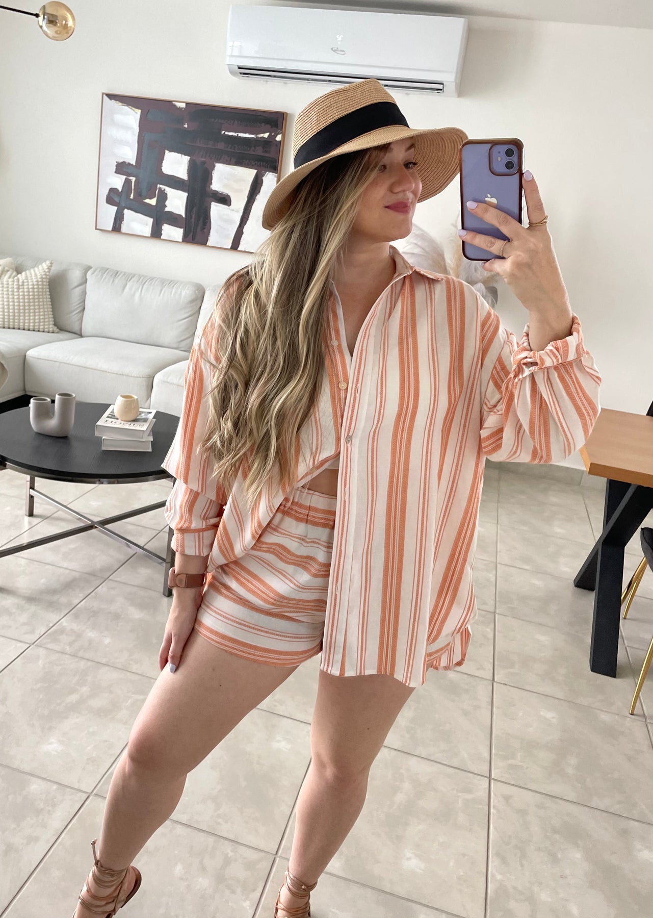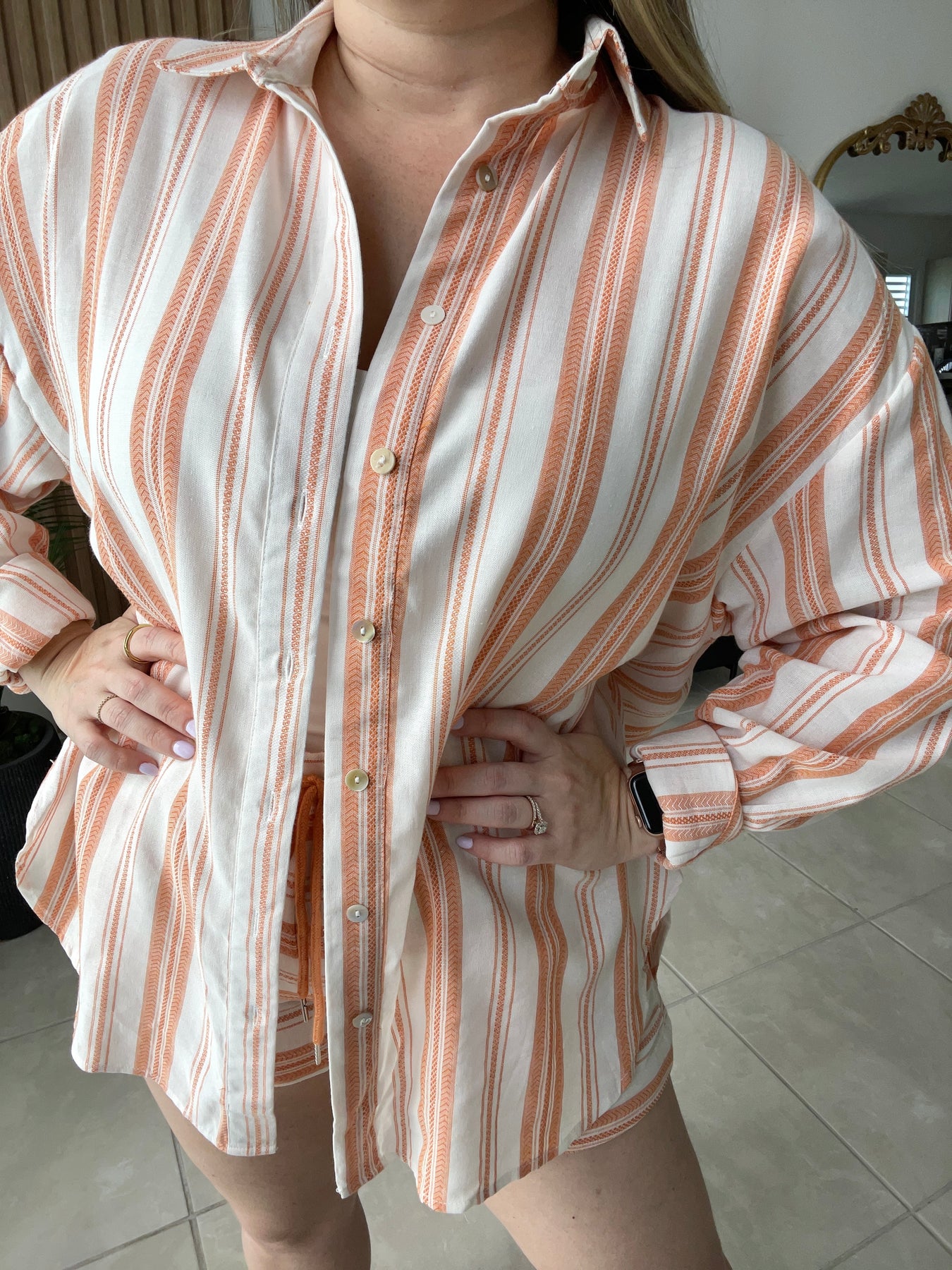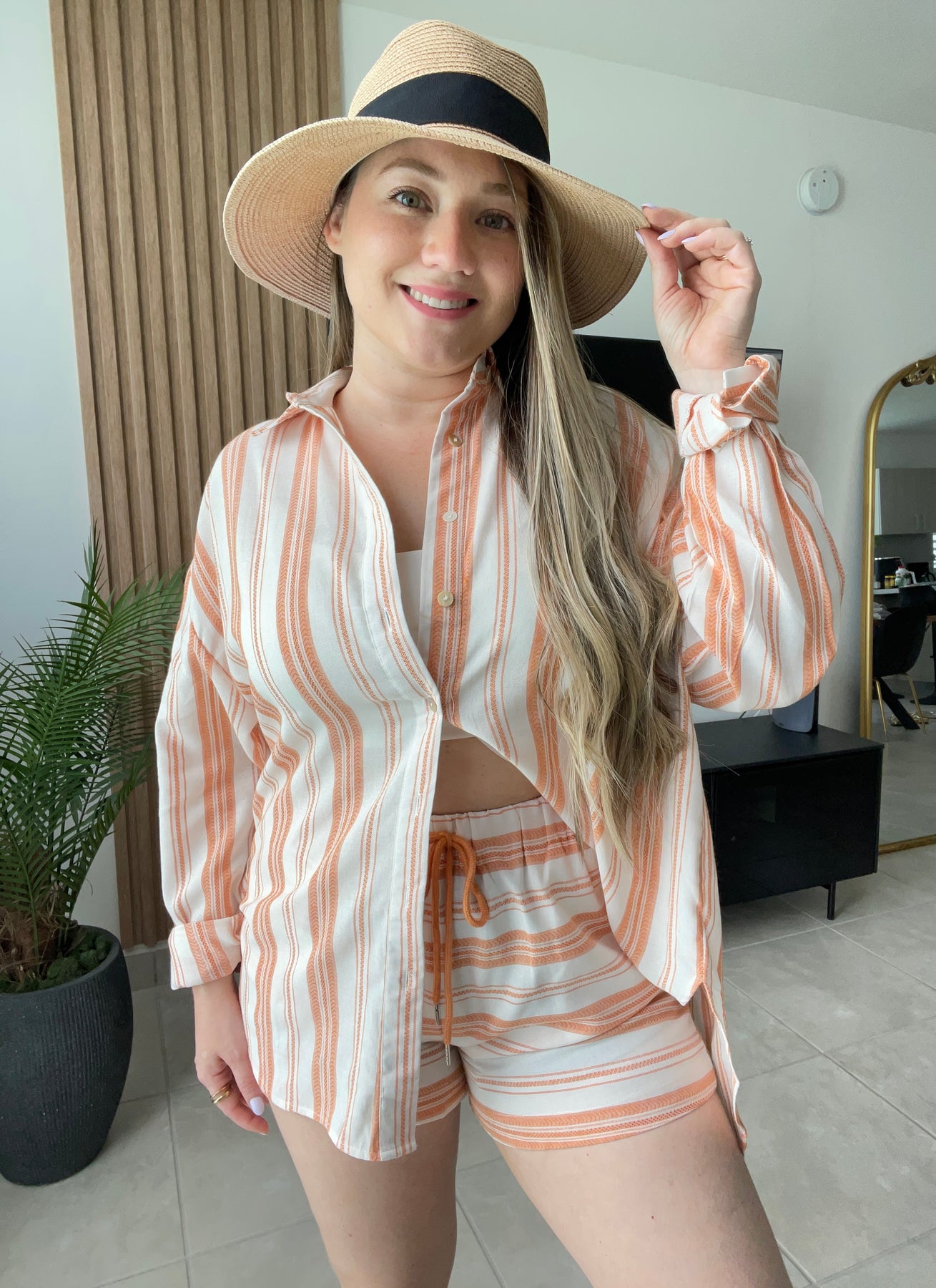 El set queda bello, puedes ponerle una camisa por dentro. LLevarlo amarrado o como te sientas mas comoda! Independientemente el size que tomes la blusa quedara holgada.