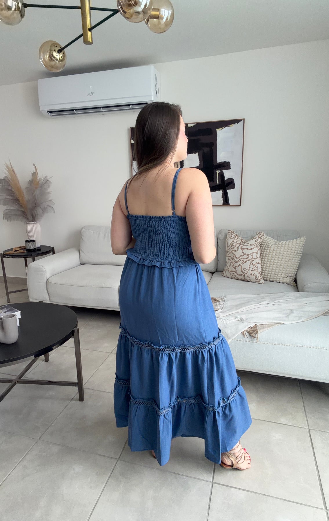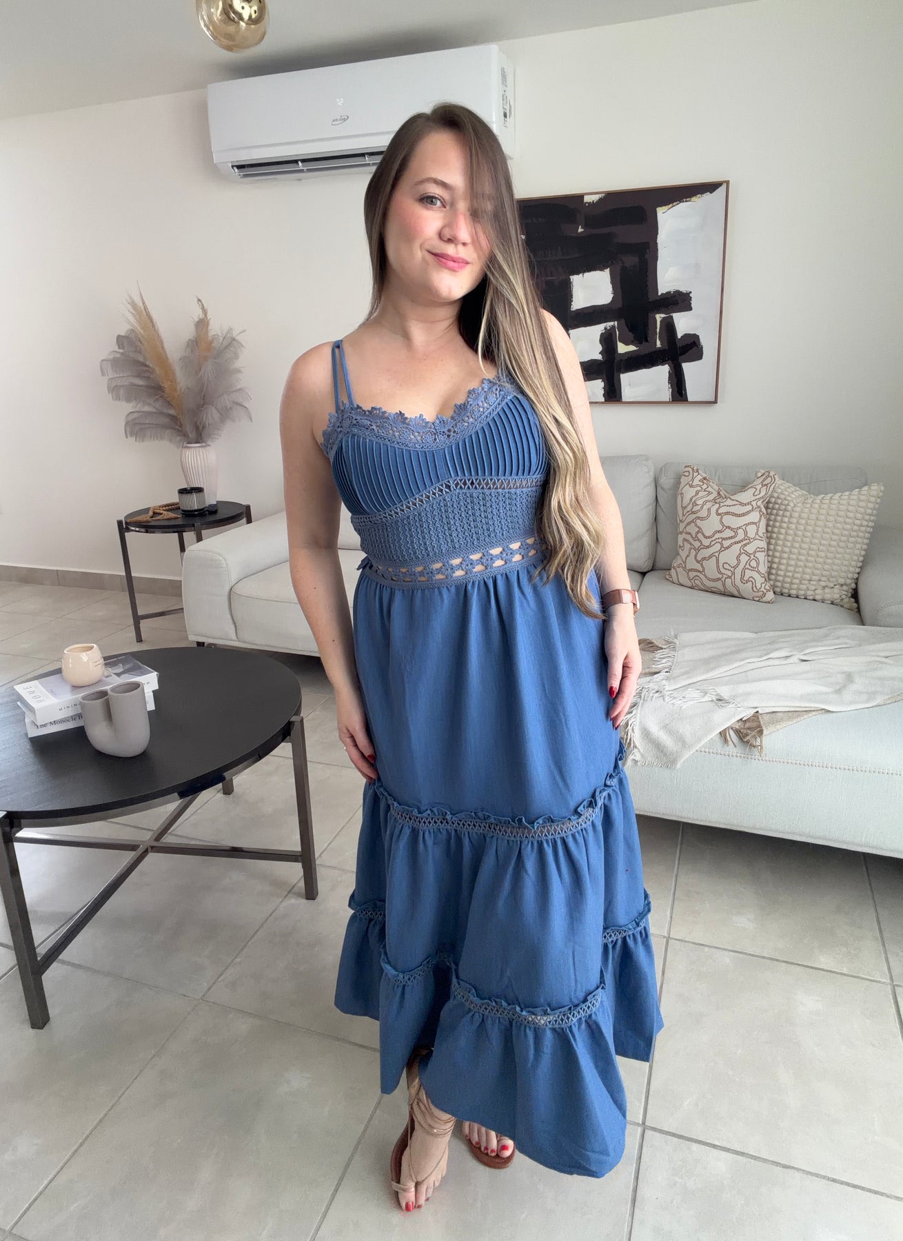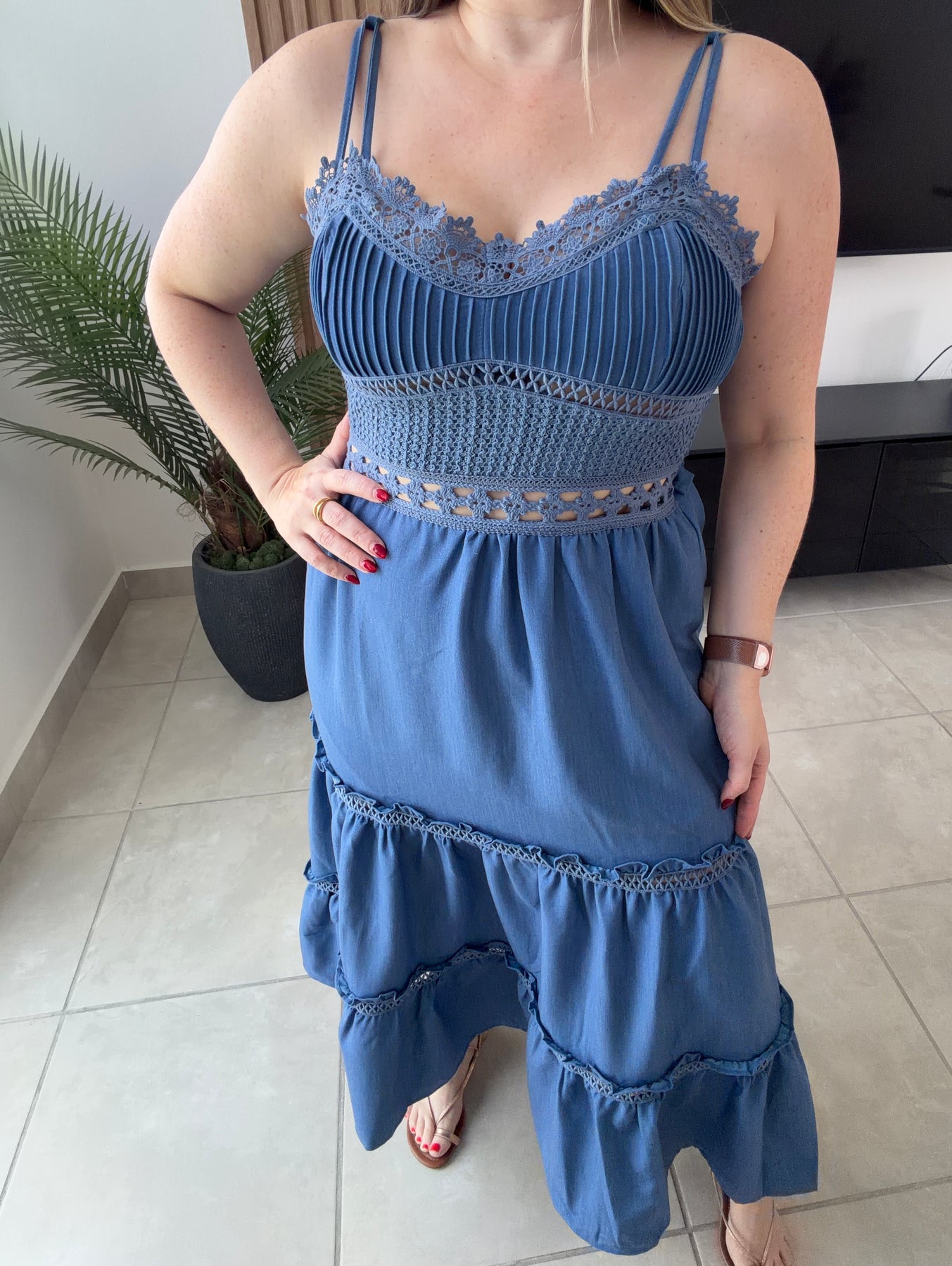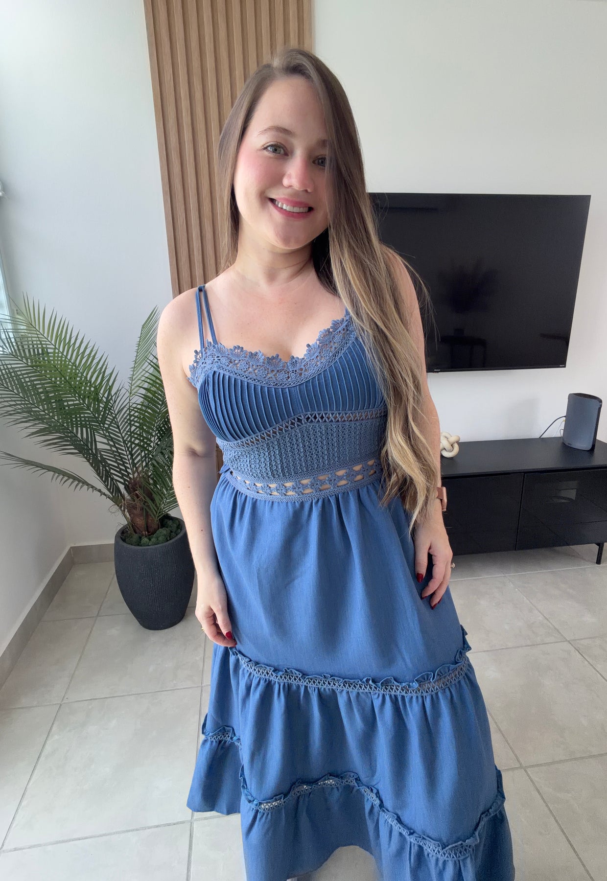 Este midi da un entalle bello y aunque la tela es en mahon, es ligera y comoda. Perfecta para esas salidas a pasear, comer o actividad casual.