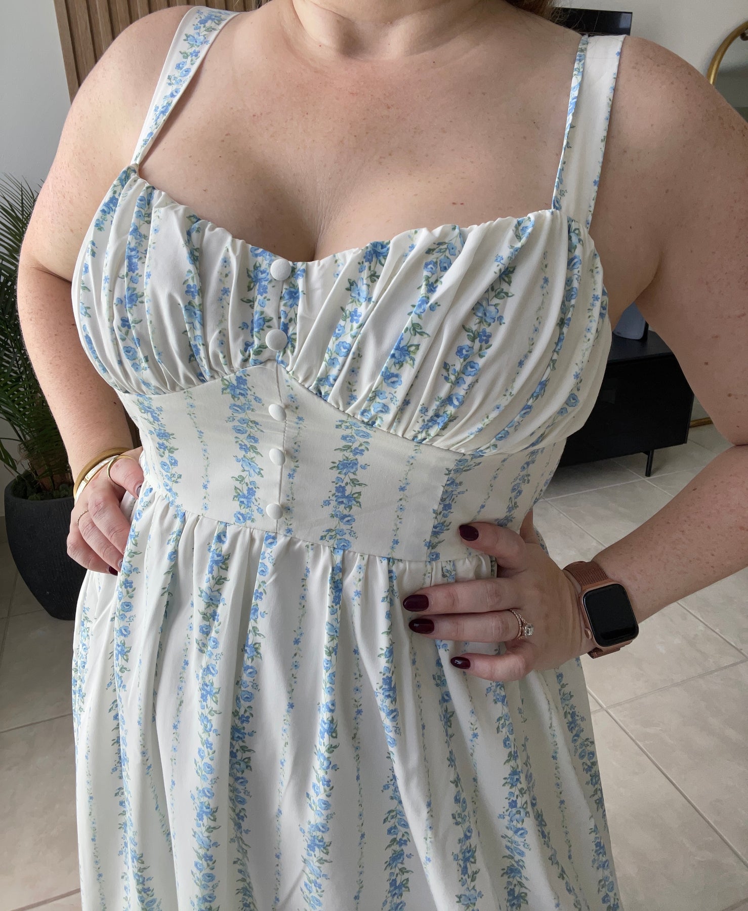 Corte en el area del busto es bajito.