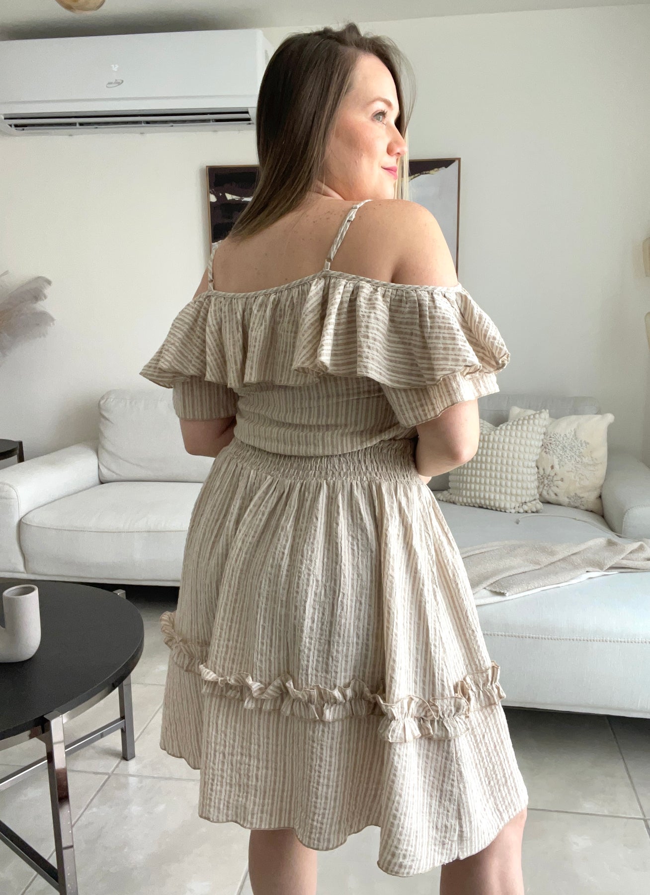 Si estas entre size, puedes subirle un size por que la tela no estira, solo cede el area de la cintura.